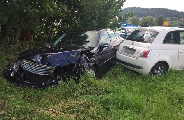 Eine 75-jährige Frau aus Aerzen befuhr gegen 16.00 Uhr mit einem Pkw Fiat die Bundesstraße 83 in Richtung Hameln. Auf Höhe der Ottostraße zog sie aus nicht bekannten Gründen mit unverminderter Geschwindigkeit nach links auf die Gegenfahrbahn. Hier kam es zur Kollision mit einem entgegenkommenden Pkw Mercedes, der von einem 59-jährigen Mann aus Kiel gefahren wurde.