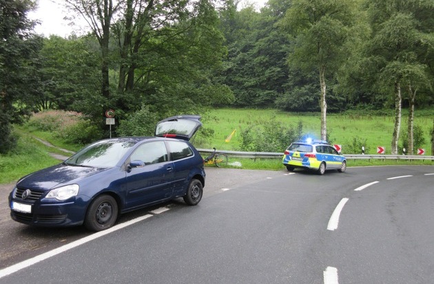 POL-HM: Unfall auf der L 550 - Fahrradfahrer geriet in den Gegenverkehr und prallt gegen einen Pkw - glücklicherweise nur leicht verletzt