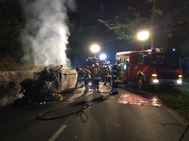 Zur Unfallursache können noch keine verlässlichen Aussagen getroffen werden; der Wagen fuhr von Hehlen in Richtung Grohnde, kam nach rechts von der Fahrbahn ab und streifte einen Baum bzw. prallte gegen einen solchen. Der Dacia schleuderte schließlich nach links über die Fahrbahn, stieß gegen eine Steinmauer und fing Feuer. Das Unfallwrack brannte komplett aus.