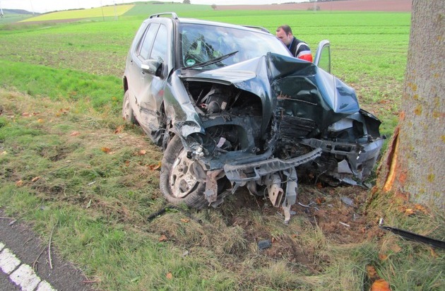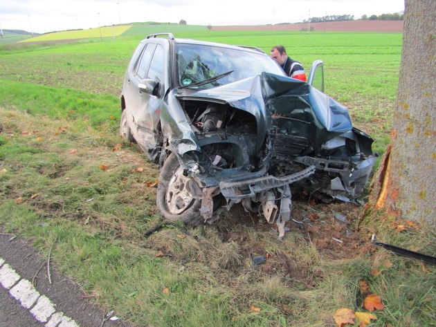 Am Freitagmorgen, gegen 09:00 Uhr, erreichte die KRL Weserbergland über Notruf die Mitteilung über einen Verkehrsunfall mit zunächst einem Verletzten bei Bremke. Nach den vorgefundenen Unfallspuren und den Ermittlungen der aufnehmenden Polizeibeamten vor Ort, hat der Fahrzeugführer einer aus Halle kommenden Mercedes Limousine, nachdem er einen Lkw überholt hatte, die Kontrolle über sein Fahrzeug verloren. Ausgangs einer Linkskurve geriet er ca. 1000 Meter vor der Ortschaft Bremke auf die linke Fahrbahnseite und kollidierte dort mit einem entgegenkommenden Opel Corsa. Die Fahrzeugführerin des Opels musste aufgrund eines Schocks und kleineren Verletzungen mit dem Rettungswagen dem Krankenhaus Hameln zugeführt werden. Der Fahrer des Mercedes erlitt mehrere Frakturen im Oberkörperbereich. Für ihn wurde nach der Erstversorgung der Rettungshubschrauber angefordert, der den Verletzten in die med. Hochschule Hannover verbrachte. Beide Fahrzeuge sind bei dem Unfall total beschädigt worden, der Sachschaden beläuft sich nach ersten Schätzungen auf rund 8000,-- Euro. Für die Versorgung, die Unfallaufnahme und Räumung der Unfallstelle musste die L 588 für volle zwei Stunden gesperrt werden. Unfallursächlich dürfte hier nach ersten Erkenntnissen eine zu hohe Geschwindigkeit auf der feuchten Fahrbahn gewesen sein. Die Polizei bittet eindringlich darum, die Geschwindigkeiten den herbstlichen Verhältnissen anzupassen. Eine feuchte Fahrbahn und Laub vermindern deutlich die Haftung. Für den Kraftfahrer heißt das, dass auch die maximal zulässige Geschwindigkeit nicht mehr gefahren werden kann. Aber auch bei schlechten Sichtverhältnissen heißt es: "Fuß vom Gas!"
