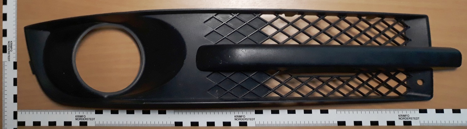 Ermittlungen haben ergeben, dass es sich bei dem sichergestellten Fahrzeugteil um das rechte Stoßstangengitter mit Nebelscheinwerfereinfassung von einem VW Sharan (Baujahr 2001 - 2010) handelt.