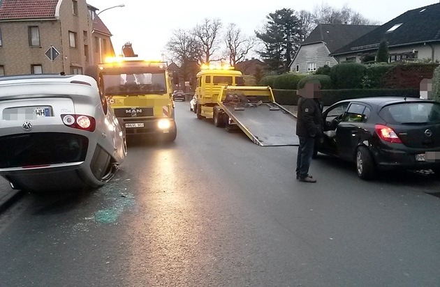 POL-HM: VW Golf prallt gegen geparkten Opel und kippt auf das Dach- Golf-Fahrerin verletzt
