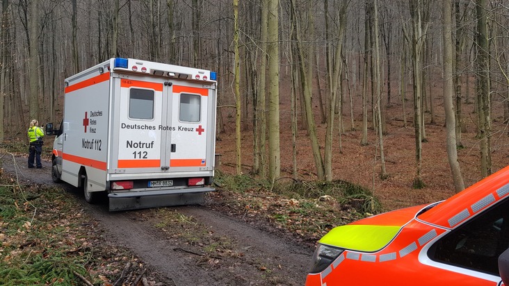 Eine Frau entdeckte heute Mittag während ihrer Wandertour im unzugänglichen Waldgebiet nördlich von Hess. Oldendorf-Zersen in der Nähe der Blutbachquelle eine leblose Person. Nachdem Polizei, Rettungsdienst und Notarzt den Auffindeort zu Fuß erreicht hatten, konnte nur noch der Tod des Mannes festgestellt werden.
