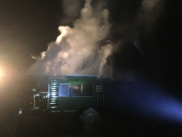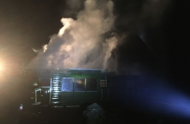 Bei Eintreffen der Einsatzkräfte stand die Laube in Vollbrand. Die Flammen griffen bereits auf die angrenzende Scheune auf einem Grundstück an der Dorfstraße über.