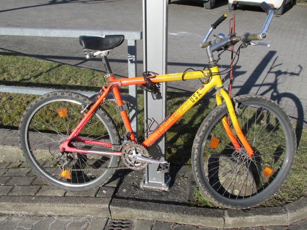Das zurückgelassene Fahrrad wurde sichergestellt. Im Rahmen eines Ermittlungsverfahrens wegen Fahrraddiebstahls, in dem ein 18-Jähriger aus Holzminden als tatverdächtig gilt, suchen die Ermittler nun den rechtmäßigen Eigentümer des auffälligen Fahrrades. Es handelt sich dabei um ein orange-farbenes Mountainbike der Marke Raleigh (siehe Foto).