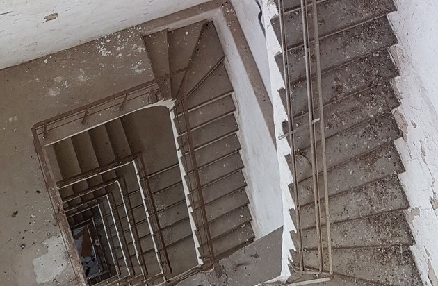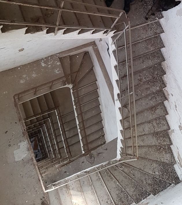 Am Einsatzort eingetroffen unterließen es die Polizeibeamten jedoch zunächst, das Gebäude zu betreten, da an den Zugängen deutlich sichtbar Warnschilder angebracht waren, die auf eine Durch -/ und Einbruchsgefahr (Lebensgefahr) hinwiesen und ein Betreten des Gebäudes untersagten.
