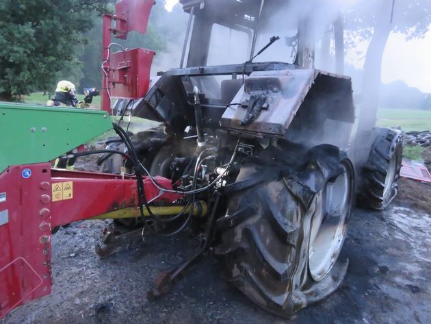 POL-HM: Brand eines Ackerschleppers/Feuerwehr verhindert Schlimmeres