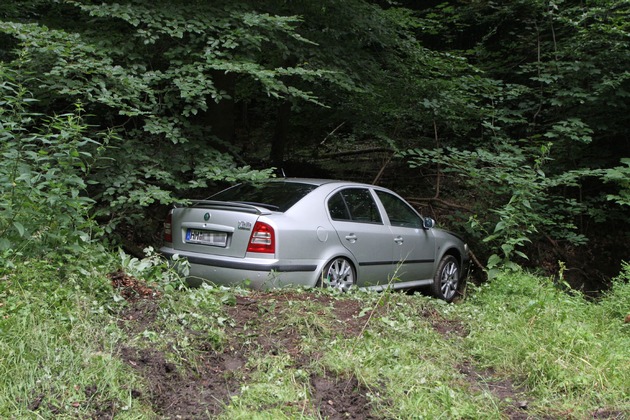 Ein zufällig vorbeifahrender Autofahrer erkannte den verunfallten Wagen und verständigte gegen 02.45 Uhr die Polizei. Beim leicht verletzten Fahrer, der den Pkw selbständig verlassen konnte und inzwischen vergeblich nach eigenen Bergungsmöglichkeiten suchte, konnte Alkoholgeruch festgestellt werden. Ein Test ergab eine Atemalkoholkonzentration von fast 1,2 Promille. Es wurde eine Blutprobe entnommen; der Führerschein wurde sichergestellt.