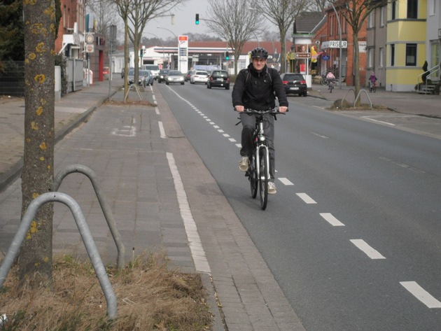 "Von 07.25 Uhr bis 08.00 Uhr mussten 59 Verstöße festgestellt werden", resümiert Polizeisprecherin Gabriela Mielke. 50 Radfahrer nutzen den Rad- und Fußweg stadteinwärts in falscher Richtung. Hier hätten die Radler an der Lichtzeichenlage die Straße queren und den auf der Fahrbahn aufgebrachten Schutzstreifen nutzen müssen. Auf dieser Straßenseite Richtung stadteinwärts wurden neun Personen mit ihrem Fahrrad gestoppt, weil sie nicht den Schutzstreifen, sondern verbotswidrig den Fußweg befuhren.