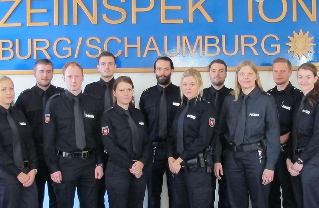 12 Neue, darunter fünf Frauen und sieben Männer, kommen direkt nach Abschluss des Studiums von der Polizeiakademie, zwei Polizisten von den Bereitschaftspolizeien aus Hannover sowie Osnabrück und eine Polizistin von der Polizei Barsinghausen. Die jungen Schutzfrauen und Schutzmänner werden zukünftig die Einsatz- und Streifendienste in Stolzenau, Stadthagen, Bückeburg, Bad Nenndorf und Rinteln verstärken.