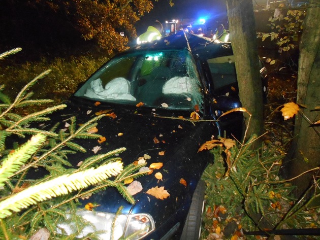 WIETZEN/HOLTE (mie) - Am frühen Freitagmorgen, 06.11.15, gegen 05.40 Uhr, war ein Liebenauer mit seinem Skoda Octavia auf der Holter Straße von der B 214 kommend in Richtung Wietzen unterwegs. Ausgangs einer leichten Rechtskurve kam der 29-Jährige von der Fahrbahn ab, überfuhr zwei Leitpfosten und prallte mit der Fahrerseite gegen einen Baum.