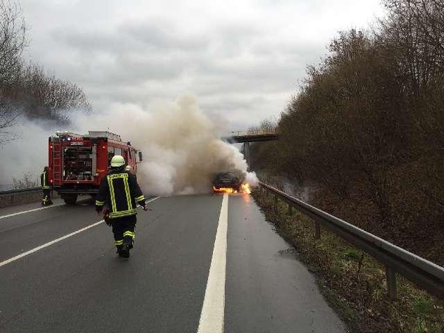 Ein mit zwei Personen besetzter Pkw Mercedes brannte gestern gg. 10.05 auf der Bundesstraße 65 in Bückeburg aus .