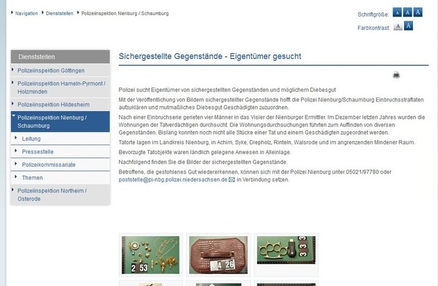 Betroffene, die gestohlenes Gut wiedererkennen, können sich mit der Polizei Nienburg unter 05021/97780 oder poststelle@pi-nbg.polizei.niedersachsen.de in Verbindung setzen.