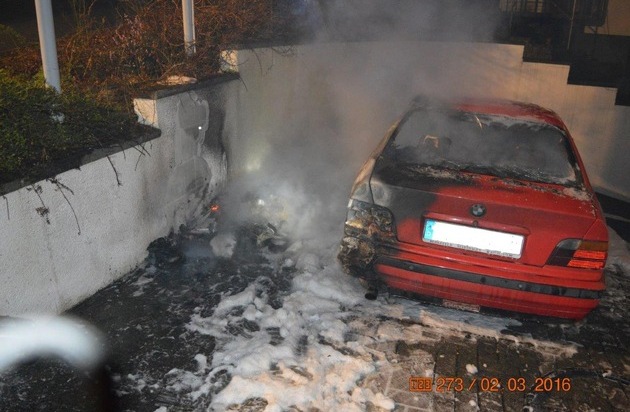 Das Feuer hatte eine starke Hitzeentwicklung und griff auf einen neben dem Container geparkten Pkw BMW über.