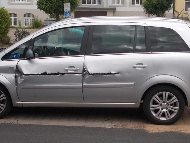 Die Fahrerseite eines Pkw Opel wurde gestern gg. 16.00 Uhr in Bückeburg, Am Oberstenhof, von der Palettengabel eines Radladers geradezu aufgeschlitzt.