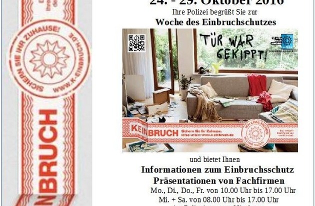 POL-NI: Woche zum Einbruchsschutz vom 24. - 29. Oktober 2016 im Polizeimuseum Nienburg Für ein sicheres Zuhause - Förderung für Maßnahmen zum Einbruchsschutz