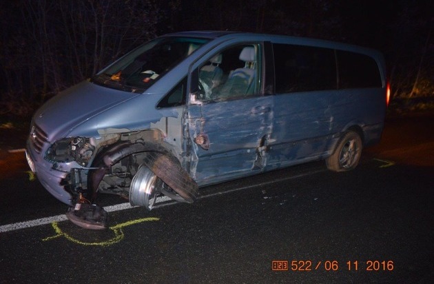 Ein nachfolgendes Fahrzeug überfuhr die Trümmerteile und wurde ebenfalls beschädigt.