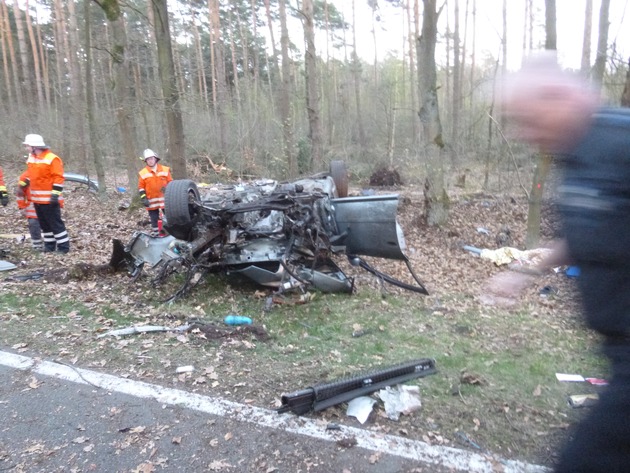 (BER)Am Samstagabend gegen 19.25 Uhr befuhr ein 24 - jähriger Rehburg-Loccumer mit seinem Audi die Landesstraße 370, Husum in Richtung Rehburg. In Höhe des Heye-Sees kam der Fahrer in einer langgestreckten Rechtskurve vermutlich aufgrund nicht angepasster und überhöhter Geschwindigkeit nach links von der Fahrbahn ab, kollidierte mit mehreren Bäumen und kam schließlich auf dem Dach zum Liegen. Der Fahrer sowie sein 22 - jähriger Beifahrer wurden bei dem Unfall schwer verletzt, der 22 - jährige erlag noch in der Nacht seinen schweren Verletzungen. Die Feuerwehren aus Landesbergen und Leese waren mit 35 Kameraden im Einsatz, die L 370 musste von 19.45 Uhr bis 22.00 Uhr komplett gesperrt werden.