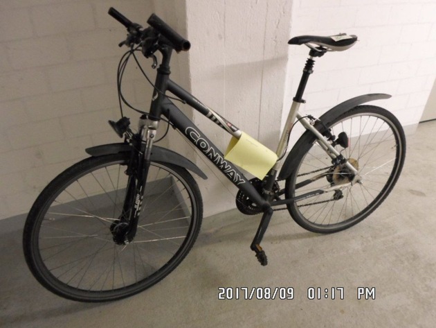 (BER)Bei der Polizei in Nienburg steht zur Zeit ein sichergestelltes Trekkingbike, wofür der rechtmäßige Eigentümer gesucht wird. Das Rad ist vermutlich im Juni 2017 gestohlen und im August bei einem Tatverdächtigen sichergestellt worden. Es handelt sich um anthrazit / graues Trekkingbike der Marke Conway. Ausgestattet ist das Fahrrad mit Lenkerhörnern und einer 21-Gang Kettenschaltung. Der Sattel ist aus schwarz-weißem Leder gefertigt. Der Eigentümer des Fahrrades wird gebeten, sich mit der Polizei in Nienburg in Verbindung zu setzen und möglichst einen Eigentumsnachweis vorzulegen. Tel.: 05021 / 97780
