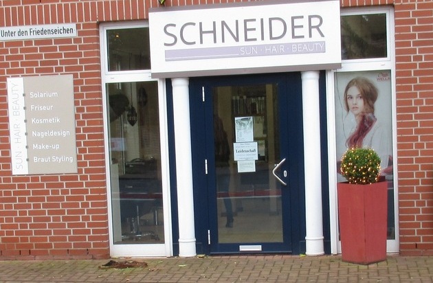 (BER)In der Nacht von Montag auf Dienstag, 27.11.2017 auf den 28.11.2017, wurde ein Blumenkübel mit Buchsbaumbepflanzung und Weihnachtsbeleuchtung vor dem Frisörgeschäft "Schneider", Unter den Friedenseichen in Stolzenau entwendet. Der ca. 1 Meter hohe und 30 cm x 30 cm messende schwere Kübel wurde mit an Sicherheit grenzender Wahrscheinlichkeit mit einem Fahrzeug abtransportiert. Hinweise auf den Verbleib des Diebesgutes bitte an die Polizei in Stolzenau unter 05761 / 92060.