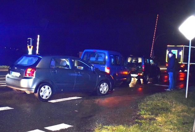 In das abgebremste Fahrzeug der Stadthägerin fuhr ein 46jähriger Nienstädter mit seinem Pkw VW und dieser wurde am Heck von einer nachfolgenden 58jährigen Stadthägerin getroffen, die ihren Pkw Toyota nicht mehr rechtzeitig abbremsen konnte.