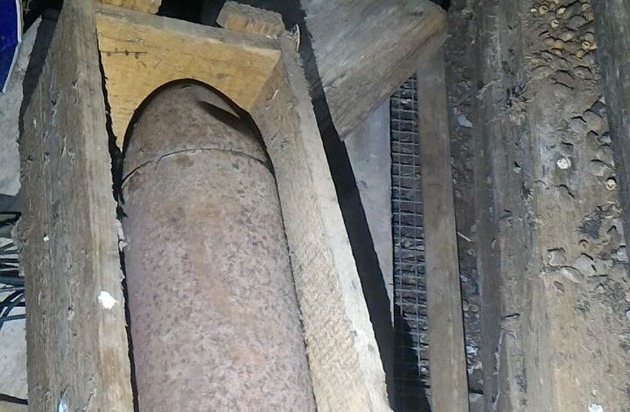 Beim Öffnen der Kiste erkannte der Finder sofort, dass es sich hierbei um ein mögliches gefährliches Geschoss handeln könnte.