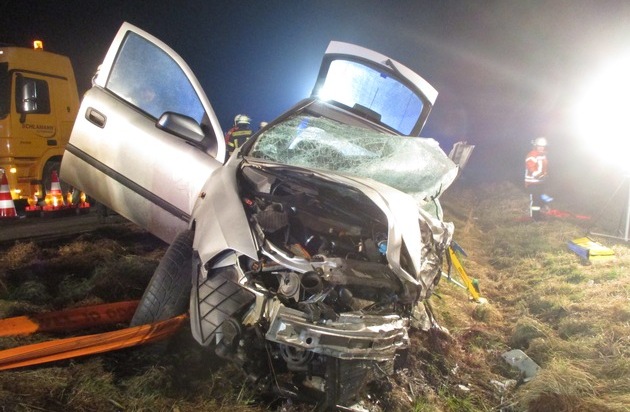 (BER)Am Mittwochabend, 07.03.2018, gegen 21.00 Uhr, befuhr ein 58 - jähriger Lkw-Fahrer aus Nordhorn die Bundesstraße 214 im Bereich der Gemeinde Steimbke. In einer leichten Kurve zwischen den Ortschaften Rodewald und Wendenbostel geriet ein entgegenkommender Pkw-Fahrer mit seinem Opel auf seine Fahrbahnseite und prallte gegen die Zugmaschine. Der Pkw wurde in den Seitenraum geschleudert, der Lkw kam auf einem benachbarten Acker zum Stehen, der Anhänger kippte um. Der aus Polen stammende Pkw-Fahrer wurde durch Feuerwehrleute aus dem Opel befreit. Er verstarb trotz eingeleiteter Sofortmaßnahmen noch an der Unfallstelle. Der Lkw- Fahrer wurde mit Verdacht auf Frakturen in die Helios-Klinik in Nienburg eingeliefert. Für die Bergungs - und Reinigungsmaßnahmen auf und an der Bundesstraße wurde diese bis gegen 07.15 Uhr gesperrt. Der Bauhof richtete eine Umleitung ein. Feuerwehrleute aus Steimbke, Rodewald, Wendenbostel und Nienburg waren für Bergungsmaßnahmen sowie Absicherung der Unfallstelle eingesetzt. Spezialisten des Dekra werden am Donnerstagmorgen die Unfallstelle gemeinsam mit der Polizei erneut untersuchen.