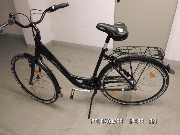 (BER)Am Dienstagnachmittag, 20.03.2018, überprüften Polizeibeamte der Polizeiinspektion Nienburg/Schaumburg in der Hannoverschen Straße einen 26-jähriger Mann. Der Überprüfte führte ein neuwertiges Fahrrad mit sich, welches nach ersten Ermittlungen nicht ihm gehörte. Zum tatsächlichen Eigentümer konnte der Mann keine Angaben machen. Die Polizeibeamten suchen nun nach dem rechtmäßigen Eigentümer des Damenrades, bzw. Fahrrades mit tiefem Einstieg. Bei dem Rad handelt es sich um ein SCO "Bellevue" in schwarz. Der Zustand ist nahezu neuwertig. Hinweise auf die Eigentümerin oder den Eigentümer nimmt die Dienststelle unter Tel.: 05021 / 97780 entgegen.