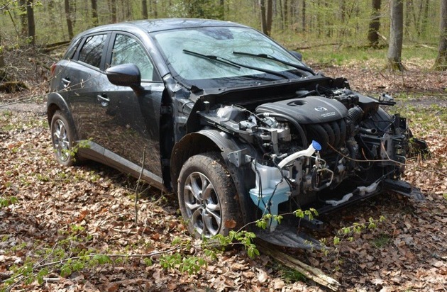 Am Dienstag wurde die Polizei Bückeburg darüber informiert, dass in der Nähe des Schloss Baum, Gemarkung Bückeburg, mitten im Schaumburger Wald, ein verunfallter Pkw stehen würde.