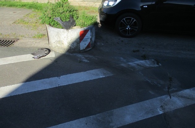(BER)Am Montagmorgen, 07.05.2018, gegen 08.26 Uhr befuhr eine 81-jährige Nienburgerin die Straße Am Drosch. In der 30er - Zone verlor sie vermutlich die Kontrolle über ihren Pkw, prallte gegen einen bepflanzten Blümenkübel und schob diesen noch ca. 30 Meter vor sich her. Verletzt wurde bei dem Verkehrsunfall niemand. Glück im Unglück - wenige Zentimeter vor einem dort geparkten weiteren Fahrzeug kam sie zum Stehen. Bei dem Aufprall wurde der Opel der Verursacherin stark beschädigt. Die 30 Meter nach dem Aufprall legte sich auf einer Felge zurück, nachdem der Reifen geplatzt war.