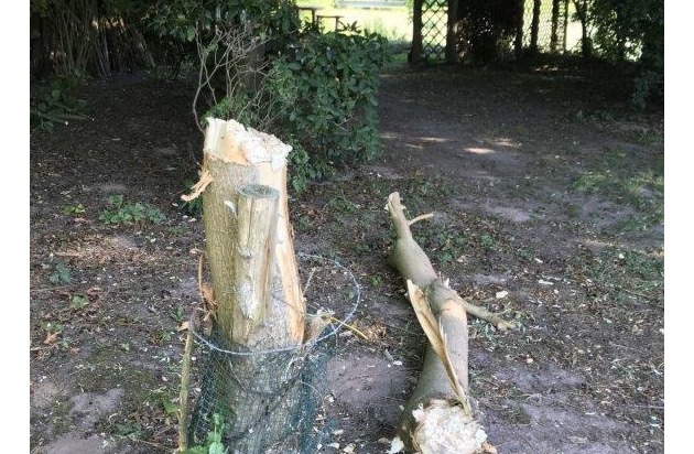 (BER)In der Zeit zwischen Donnerstag, 28.06.2018 und Samstag, 30.06.18, kam es auf einem Naturgrundstück in der Eystruper Marsch, sog. Hasseler Kolk, zu mehreren Sachbeschädigungen. Ein oder mehrere bisher unbekannte Täter zerstörten eine große Trauerweide mit einer auf dem Biotopgelände vorgefundenen Axt und beschädigten einen weiteren Baum, sowie Möbelstücke an dem dortigen See. Für Hinweise, die zur Feststellung des oder der Täter führen, lobt die Eigentümergemeinschaft eine Belohnung in Höhe von 500,- Euro aus. Die Entscheidung über die Belohnung trifft die Eigentümergemeinschaft. Hinweise bitte an die Polizei Hoya, Tel. 04251934640