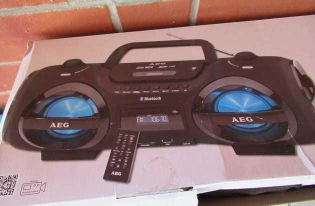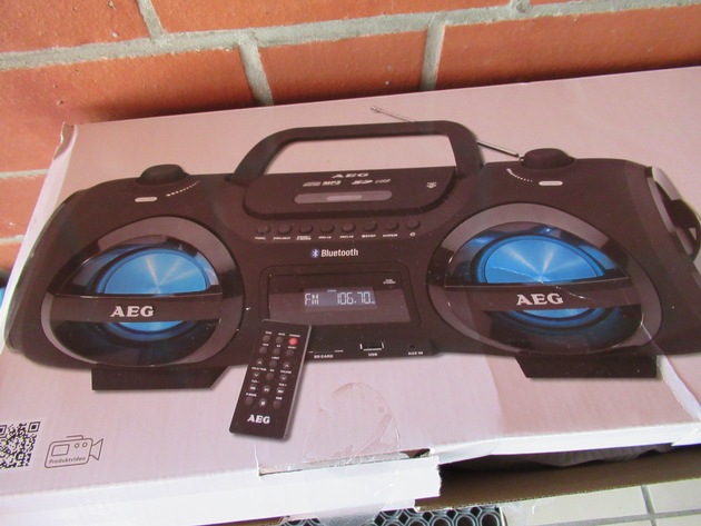 (BER)Bereits am Pfingstwochenende, 19.05. - 21.05.2018, ereignete sich ein Einbruch in die Grundschule in Sachsenhagen. Neben etwas Bargeld erbeuteten die Täter einen Samsung Flachbildschirm sowie zwei transportable Musikanlagen der Marke AEG (siehe Foto). Aus ermittlungstaktischen Gründen hatte die Polizei zum Tatzeitpunkt auf eine Veröffentlichung in den Medien verzichtet, da bereits zu dem Zeitpunkt ein Tatverdacht existierte. Nach weiteren Ermittlungen wurde am 05.07.2018 und am 06.07.2018 in insgesamt drei Wohnungen von Tatverdächtigen in Sachsenhagen, Heuerßen und Pollhagen durchsucht. Der Flachbildschirm und die Musikanlagen wurden nicht gefunden. Hinweise auf den Verbleib der Geräte oder, wo diese möglicherweise zum Verkauf angeboten wurden, nimmt die Polizei in Hagenburg unter Tel.: 05033/6655 entgegen.