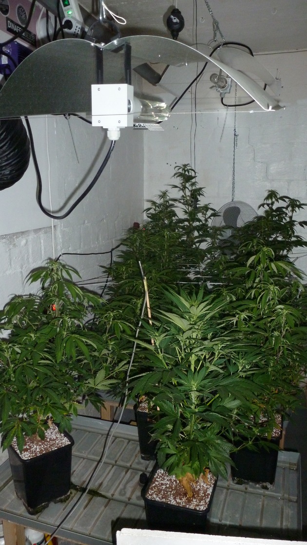 Im Haus wurden zunächst nur etwas Marihuana und eine kleine Anzuchtanlage mit den 20 Setzlingen aufgefunden. In der Kellerwohnung wurden dann jedoch leise Ventilatorengeräusche wahrgenommen. Gut versteckt hinter einer Leichtbauwand fanden die Ermittler die kleine Indoorplantage. Auf ca. 4 qm erfolgte ein professioneller Anbau von insgesamt 10 Cannabispflanzen. Die Pflanzen hatte eine Wuchshöhe zwischen 80 cm und 125 cm. Die kleine Plantage (siehe Foto) verfügte über Halogenlampen, eine Bewässerungsanlage sowie eine zum Garten führende Be- und Entlüftung im Wert von mehreren tausend Euro. Teile der Anlage wurden ebenfalls sichergestellt.