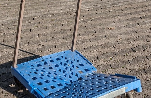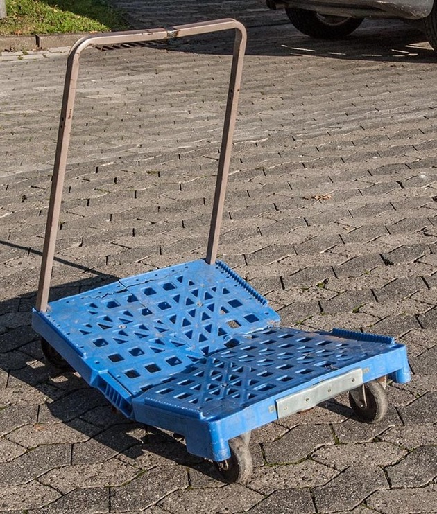 Nach dem Einsteigen durch ein aufgebrochenes Fenster versuchten die Täter zunächst den Geldschrank auf einen kleinen Transportwagen (Bild) zu verladen. Der Transportwagen hielt dem schweren Gewicht des Geldschranks nicht stand und brach durch. Im Anschluss wurde der Geldschrank mit einer Sackkarre abtransportiert.