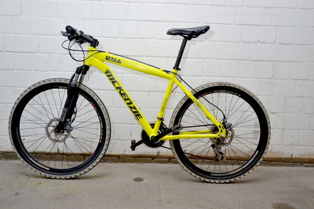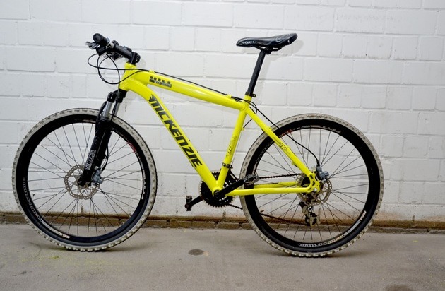 OSTERODE (SIM) Am 11.12.2015 wurde gegen 16:30 Uhr in einem Waldweg / Spazierweg im Bereich des Sportplatzes "Freiheiter Höhen" (Verlängerung der Alten Harzstraße) ein gelbes Mountainbike der Marke "MCKENZIE" aufgefunden. Es ist nicht auszuschließen, dass dieses Fahrrad aus einer Straftat stammt, bzw. zum Begehen einer Straftat benutzt wurde. Wer sachdienliche Hinweise zu den Eigentumsverhältnissen oder zu Personen machen kann, welche mit diesem Mountainbike in Verbindung gebracht werden können, melde sich bitte beim Polizeikommissariat Osterode unter 05522-5080
