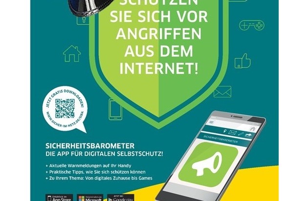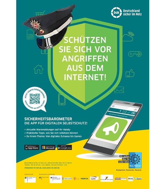 Um den Überblick zu behalten und sich selbst zu schützen empfiehlt das Präventionsteam der Polizeiinspektion Northeim/Osterode die Nutzung der "Sicherheitsbarometer (SiBa)-App" der Aktion "Deutschland sicher im Netz". Die mobile Lösung des DsiN-Sicherheitsbarometers zeigt aktuelle Risiken im Internet für Privatanwender und kleine Unternehmen. Das Barometer differenziert die Gesamtgefahrenlage nach der Ampelkennzeichnung "grün", "gelb" und "rot" und hilft so einzuschätzen, inwieweit Warnmeldungen relevant sind. Weiterhin erhalten die Nutzer praktische Tipps, wie sie sich selbst schützen können.Die Polizeiliche Kriminalprävention der Länder und des Bundes ist einer der Partner der Initiative "Deutschland sicher im Netz" und fördert damit den sicheren Umgang mit digitalen Medien. Die App ist kostenfrei im App Store, bei Google play und Microsoft erhältlich.