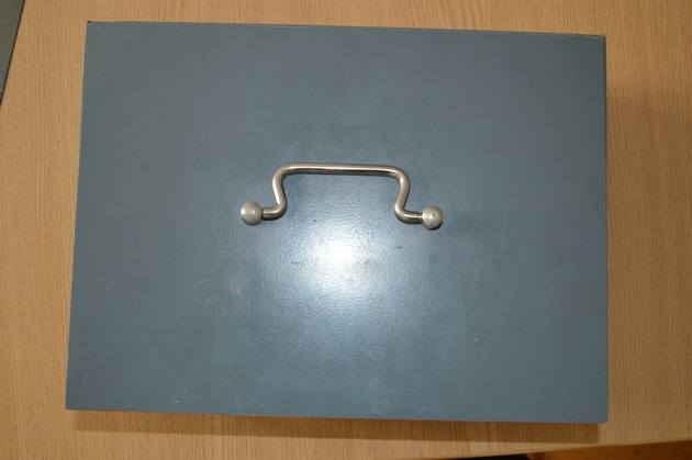 Einbeck -vo. Einbeck, Innenstadtbereich. Am 03. April 2017 wurde auf einem Schulhof im Stadtbereich eine graue Geldkassette aufgefunden. Da die Kassette gewaltsam geöffnet wurde, kann eine damit verbundene Straftat nicht ausgeschlossen werden. Zur Zeit liegt aber bei der Polizei Einbeck keine Diebstahls- oder Einbruchsanzeige vor, wo solch eine Kassette entwedet worden ist. Die Geldkassette hat die Maße 35x25,5x13,5 cm, ist außen grau und innen rot. Auf der Rückseite ist eingestanzt das Wort "Bund" und im Inneren ist ein Aufkleber mit der Aufschrift "G.Müller-Herborn 1978" angebracht, wobei es sich dabei wohl um den Hersteller der Geldkassette handelt. Wer Angaben zu der Geldlassette machen kann oder diese sogar vermisst, kann sich unter der Telefonummer 05564-94978-115 bei der Polizei Einbeck melden.