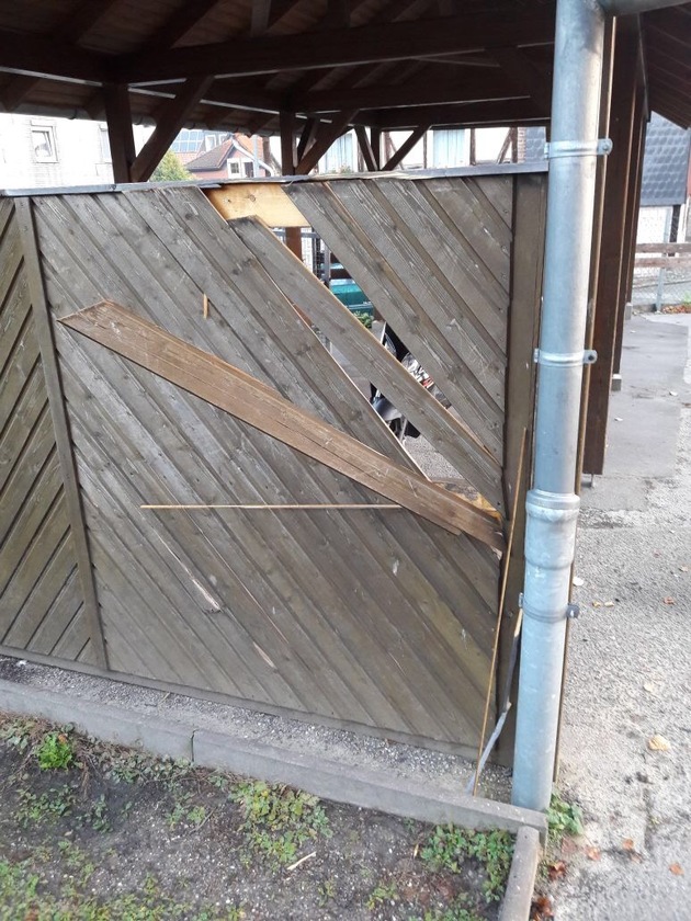 Einbeck -vo. OT Greene, Steinweg, Sonntag, 15. Oktober 2017, 06.30 Uhr bis Montag, 16. Oktober 2017, 06.45 Uhr. Unbekannte Täter beschädigten die Holzverkleidung an einem Bus-Wartehäuschen auf dem Schulhof der dortigen Grundschule. Die Schadenshöhe wird auf ca. 200,- Euro geschätzt. Die Polizeistation Kreiensen bittet Zeugen, die Angaben zu den Tätern machen können oder die Beobachtungen im Umfeld des Wartehäuschen gemacht haben, sich bei der Polizeistation Kreiensen unter der Telefonnummer 05563-212 oder bei bei Polizei in Einbeck unter der Telefonnummer 05564-94978-115 zu melden.