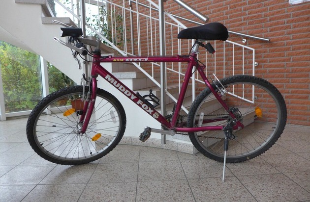 USLAR (js) Am Freitag, dem 20.10.17 wurde auf einem Grundstück in der Mühlenstraße in Uslar ein lila-farbenes Mountainbike der Marke "Muddy Fox" aufgefunden. Der Eigentümer wird gebeten, sich mit der Polizei in Uslar, Tel.: 05571/926000, in Verbindung zu setzen.