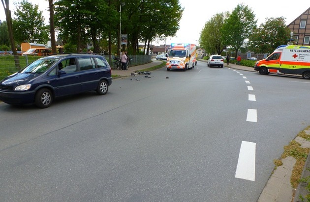 Ein 31-jähriger Fahrzeugführer aus Herzberg befuhr mit seinem PKW die Straße Vorstadt und wollte an oben genannter Einmündung nach links in die Juesholzstraße einbiegen. Hierbei übersah er den von links kommenden 59-jährigen, welcher als letzter einer Gruppe von vier Fahrradfahrern den Einmündungsbereich in Richtung B 27 passieren wollte. Der Fahrradfahrer erlitt durch den Sturz eine Kopfplatzwunde, eine Schulter- sowie Unterschenkelprellung und wurde mit dem Rettungswagen dem Krankenhaus in Herzberg zugeführt. Der PKW-Führer blieb unverletzt.