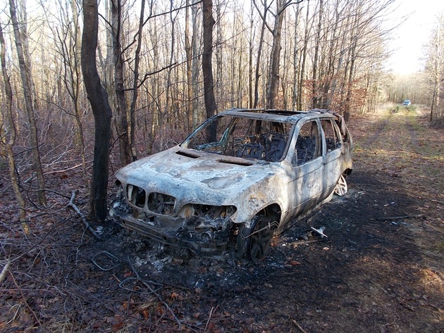 In der Nacht vom 24.01.18 auf den 25.01.18 wurde in der Zeit kurz vor Mitternacht und 06.30 Uhr in ein einsam gelegenes Einfamilienhaus bei Hörup eingebrochen. Bei diesem Einbruch entwendeten unbekannte Täter den Fahrzeugschlüssel des Hausbesitzers und anschließend den im Carport abgestellten BMW X5 in grau. Das Fahrzeug wurde zur Fahndung ausgeschrieben. Fünf Tage später, am 29.01.18, fand ein Jäger einen BMW in einem Waldstück zwischen Hörup und Sprakebüll. Das Fahrzeug war vollständig ausgebrannt, die ursprüngliche Farbe nicht mehr erkennbar und die Kennzeichen nicht auffindbar. Der BMW wurde im Auftrag der Kripo Niebüll zwecks Sicherstellung und angehender Spurensuche eingeschleppt. Anhand der Fahrzeugidentifizierungsnummer konnte das Fahrzeug dem Einbruch in Hörup zugeordnet werden.