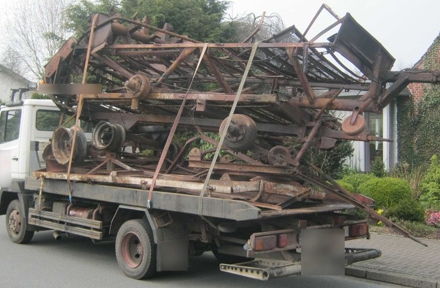 Der 38-jährige Fahrer transportierte abgebranntes landwirtschaftliches Arbeitsgerät auf der Ladefläche seines LKW und hatte dies mit drei Spanngurten "gesichert". Zwei der Gurte wiesen auch noch erhebliche Beschädigungen auf, sodass die Weiterfahrt untersagt und ein Bußgeldverfahren eingeleitet wurde.