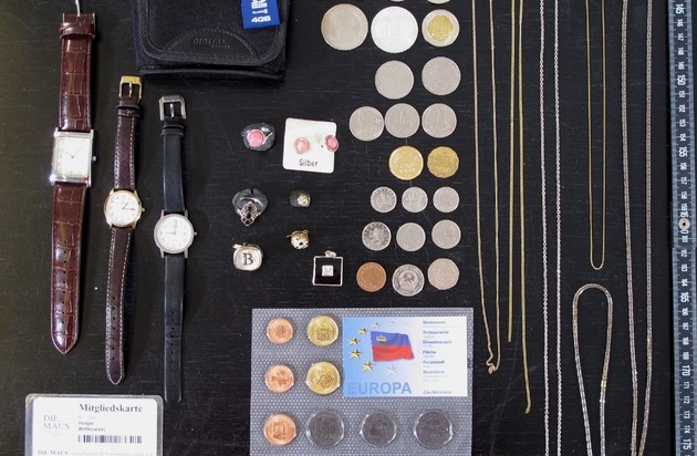 Im Zusammenhang mit den Ermittlungen wurden u.a. Sonderprägungen von 2- und 10-Euromünzen, 2-DM-Münzen, eine 1-DM Sondermünze in Gold, Münzen aus den USA und Großbritanien, Euromünzen aus Liechtenstein, Armbanduhren der Marken Bergmann, Festina und Dugena sowie Sammlermünzen aus der DDR und der Vatikanstadt sichergestellt.