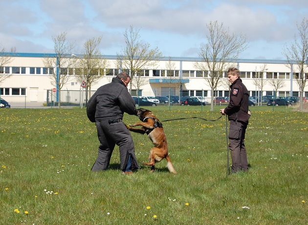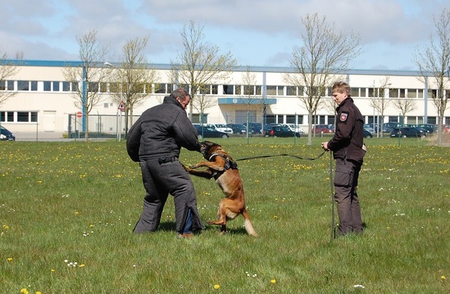 Cuxhaven. 38 Schülerinnen und Schüler im Alter zwischen 10 und 15 Jahren erlebten heute einen abwechslungsreichen und informativen Tag bei der Polizei in Cuxhaven. So bekamen die Kinder und Jugendlichen aus der Stadt und dem Cuxland einen interessanten Einblick in die unterschiedlichen Tätigkeiten bei der Polizei. Den Zellentrakt besichtigen, Fingerabdrücke nehmen und den Verdener Diensthundeführern mit den Diensthunden "Tiger" und "Joker" bei der Suche nach Drogen und bei der Überwältigung eines Täters zusehen, waren dabei sicherlich die Höhepunkte des Tages. Die Bundespolizei fuhr die Schülerinnen und Schüler mit einem Polizeibus zum Außengelände, auf dem die Polizeihundevorführung stattfand. Für die Außenaktionen stellte freundlicherweise die EWE Netz GmbH ihr Betriebsgelände an der Humphry-Davy-Straße zur Verfügung.