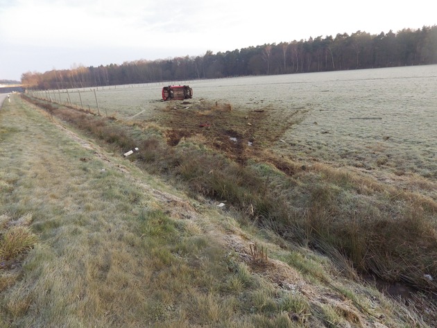 Am Dienstagmorgen (08.03.2016) gegen 6:45 Uhr, fuhr eine 57-Jährige aus Schwanewede mit ihrem Pkw auf der A 27 in Richtung Cuxhaven. Aus bisher ungeklärter Ursache kam sie mit ihrem Fahrzeug in Höhe des Parkplatzes Habichthorst (zwischen den Anschlussstellen Ihlpohl und Schwanewede) erst nach links von der Fahrbahn ab und touchierte dort die Mittelschutzplanke. Anschließend verlor die Frau die Kontrolle über ihren Pkw und schleuderte nach rechts über die Autobahn. Hier kam der Pkw in den dortigen Entwässerungsgraben und überschlug sich mehrfach auf dem angrenzenden Feld. Die 57-Jährige wurde bei dem Unfall schwer verletzt und mit dem Rettungswagen in ein Krankenhaus gebracht. Die Autobahn in Richtung Cuxhaven wurde bis 8:30 Uhr teilweise halbseitig gesperrt.
