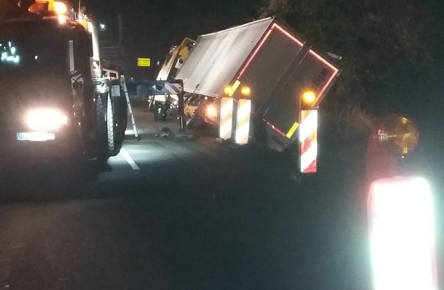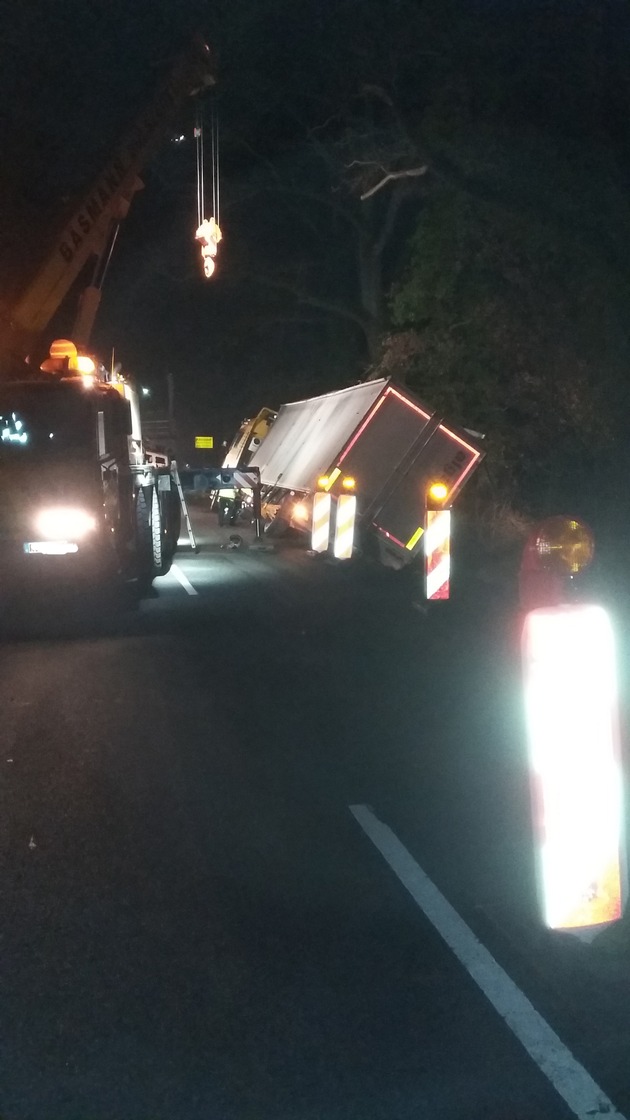 Beverstedt. Ein 50-jähriger Lkw-Fahrer aus dem Kreis Rotenburg (Wümme) befuhr am Montagmittag (12.12.2016), um 13:30 Uhr, die L122 aus Kirchwistedt kommend, in Richtung Altwistedt. Etwa 100 m vor dem Ortseingang Altwistedt kam ihm ein anderer Sattelzug mit Auflieger entgegen. Da dieser ziemlich weit mittig gefahren sein soll und die Straßenbreite für zwei sich begegnende Sattelzüge zu gering ist, wich der 50-Jährige auf den Grünstreifen aus. Dort kippte sein Fahrzeug auf die Seite und blieb liegen. Der andere Lkw-Fahrer setzte seine Fahrt fort, ohne sich um den Verunfallten zu kümmern. Für die Dauer der Bergung und Umladung des Schnittgutes musste die Landesstraße an der Unfallstelle etwa fünf Stunden lang durch die Straßenmeisterei gesperrt werden. Zeugen werden gebeten, sich an die Polizeistation Beverstedt (Tel.: 04747 / 873970) oder an das Polizeikommissariat Schiffdorf (Tel.: 04706 / 9480) zu wenden.
