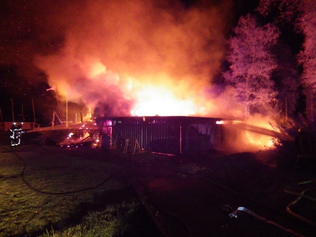 Geestland. In der Nacht zum heutigen Mittwoch (13.09.2017) wurde der Polizei gegen 3 Uhr früh ein Brand auf dem Gelände eines Wassersportvereins in der Straße "Am Kanal" in Bad Bederkesa gemeldet. Das auf dem Gelände befindliche Vereinsheim brannte aus bislang unbekannter Ursache nieder, es entstand ein Sachschaden in Höhe von mehreren zehntausend Euro. Die Feuerwehr war bis in die Morgenstunden mit den Löscharbeiten beschäftigt, die Ermittlungen zur Brandursache dauern an.