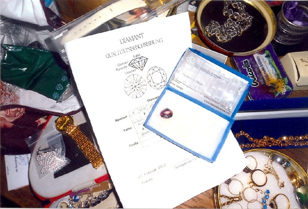 Der Geschädigte hat der Polizei inzwischen die beigefügten Fotos zur Verfügung gestellt, die einen Teil der abhanden gekommenen Schmuckstücke zeigen. Im Rahmen der weiteren polizeilichen Ermittlungen ergaben sich Hinweise darauf, dass der Schmuck in der Zeit vom 17.09.2014 bis zum 22.09.2014 bei einem Juwelier im Raum Göttingen zur Begutachtung vorgelegt worden sein könnte. Dabei soll u.a. festgestellt worden sein, dass es sich zumindest teilweise um unechte Edelsteine handelt. Die Polizei fragt: "Wo wurden die abgebildeten Schmuckstücke zur Begutachtung vorgelegt?" Hinweise bitte an die Polizei Göttingen, Telefon 0551/491-2115.