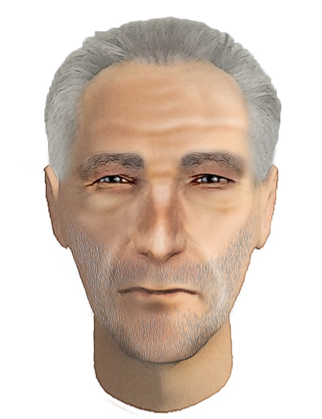Er wird wie folgt beschrieben: Ca. 55-60 Jahre alt, ca. 180 cm groß, schlanke, eher hagere Statur, gepflegte Erscheinung, ca. 2-3cm langes, silbergraues, volles Haar mit leichtem Ansatz von Geheimratsecken, silbergrauer Bart (etwas länger als ein drei-Tage-Bart), schmale Augen, markante Nase, relativ lange Arme, roch stark nach einem holz-moschusartigen Parfum, komplett schwarz gekleidet mit jeansartiger Hose und jackettartigem Oberteil.