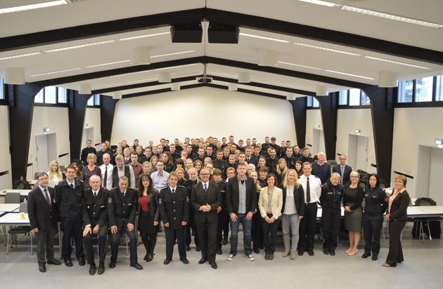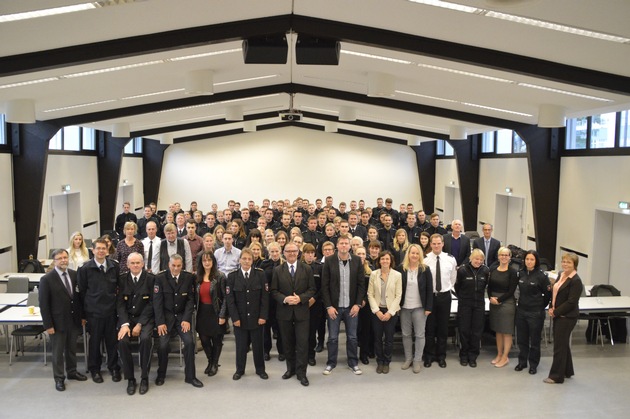 In seiner Begrüßung hob Polizeipräsident Lührig hervor, dass "Polizeiarbeit immer Teamarbeit ist". Er betonte das hohe Vertrauen der Bevölkerung in die Polizei und verdeutlichte damit seine Erwartungshaltung an die neuen Mitarbeiterinnen und Mitarbeiter. "Wir müssen als bürgerorientierte Polizei differenziert, angemessen und mit einem vorbildlichen Erscheinungsbild tätig werden. Das ausgeprägte Vertrauen unserer Bürgerinnen und Bürger müssen wir uns jeden Tag wieder neu erarbeiten", sagte Uwe Lührig sehr nachdrucksvoll.